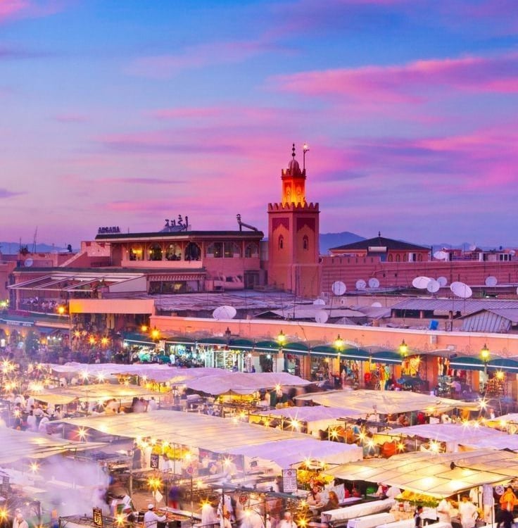 Marrakech es una ciudad que hipnotiza desde el primer instante. Conocida como la “Ciudad Roja” por el color de sus murallas y edificios, es un destino que combina historia, cultura y lujo de manera única. En su famosa medina, declarada Patrimonio de la Humanidad por la UNESCO, podrás perderte entre exóticos zocos, palacios majestuosos como el Palacio de la Bahía y la impresionante plaza Jemaa el-Fna, donde la vida local cobra un ritmo vibrante y auténtico.